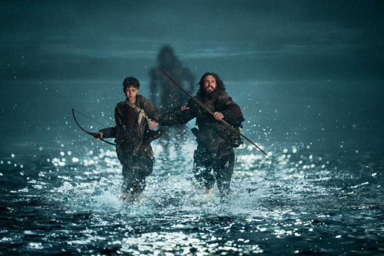 Dal tetto sfondato, come sentinelle dalle feritoie di una torre, vedono un grande fuoco tra i boschi. Non è un incendio. Jamie finge di non sapere di che si tratta e, mentre è ancora buio, approfittando dell’inizio della bassa marea, padre e figlio corrono con l’acqua ai polpacci sulla strada che lega la terraferma all’isola, proprio come il treno sulle rotaie sommerse di Spirited Away (2001) di Miyazaki. Il cielo è pieno di galassie e nebulose, un’intera cosmogonia in atto, mentre alle loro spalle l’alpha li insegue correndo instancabile e guadagnando sempre più terreno. Proprio in extremis si salvano, l’alpha viene ucciso e Spike è festeggiato da tutto il villaggio come un piccolo eroe. La festa ha bagliori orgiastici che ricordano le atmosfere da setta di The Village (2004) di M. Night Shyamalan e Midsommar (2019) di Ari Aster, e il rituale si accartoccia e si trasforma in trauma. Spike scopre il padre fare sesso con un’altra donna, Rosie, la maestra, e tutto il suo mondo crolla. Il modello maschile è un modello di menzogna a tutti i livelli, nella narrazione enfatica del padre che, come uno scaldo vichingo, esagera le imprese del ragazzo, nelle omissioni su chi abita la terraferma e sulle cause della malattia della madre, nel tradimento furtivo con un’altra donna. Il ragazzo, ribellandosi, allontana il padre da casa. E qui il film ha una svolta.