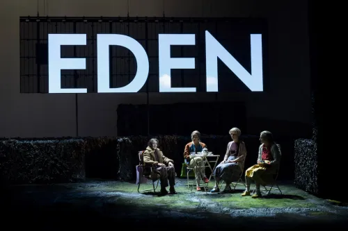 A quasi cinque anni di distanza da quell’approccio germinale, oggi lacasadargilla affronta Escaped Alone nella sua prima messa in scena italiana, e con esso si misura, una volta di più, con l’incombere della fine. Da quel reading, la compagnia eredita l’intuizione di un ensemble attorale anagraficamente non coerente con le note drammaturgiche, ma accosta adesso alla scelta registica un più importante gesto produttivo, un moto affettivo che conferisce ulteriore vitalità al progetto. A dare corpo e voce a Sally, Vi, Lena e alla signora Jarrett sono così, rispettivamente, Caterina Carpio, Arianna Gaudio, Alice Palazzi e Tania Garribba: quattro attrici ben più giovani delle loro personagge, ma soprattutto quattro compagne di strada, co-artefici di alcune delle pagine più rilevanti della storia de lacasadargilla. È una piccola celebrazione di quell’ecosistema di relazioni orizzontali, impreviste e fluide, che contraddistingue il panorama teatrale odierno, e che dissolve in una rete di legami artistici sia la supposta verticalità della regia sia la rigida conformazione, ancora novecentesca, della compagnia: un cluster di competenze e ruoli, di anime affini, che si scelgono tra loro e scelgono di portare avanti, insieme, un’idea di teatro. E a scorrere la locandina di Escaped Alone, al suo debutto nazionale al Teatro Grassi, troviamo altri nomi di collaboratori storici del gruppo, accanto a quelli incontrati grazie al sistema degli Artisti Associati al Piccolo: Margherita Mauro come dramaturg, Luigi Biondi come drammaturgo delle luci, Anna Missaglia ai costumi, e poi Marta Ciappina, Marco D’Agostin. D’altro canto il soggetto tematico della poliedrica pièce di Churchill, lungi dall’esaurirsi in uno sguardo gettato verso l’abisso in cui l’umanità sta precipitando, è la stessa materia ineffabile delle relazioni amicali, la tessitura di una sorellanza quotidiana come ultimo argine posto prima del crollo. Proprio lo specifico muliebre conferisce al testo e alla sua traduzione scenica sensi ulteriori: se la materia umana che informa e ha informato negli anni lacasadargilla riverbera oggi attraverso le parole di Churchill, e grazie a esse trova nuova linfa, il tema della vecchiaia femminile, il suo scandalo – che la drammaturga inglese, con la sua consueta parsimonia di mezzi, tocca con levità menzionando gli acciacchi tipici dell’età: le anche da sostituire, le ginocchia e le schiene doloranti – diventa, nei corpi di donne di circa cinquant’anni, un orizzonte da attraversare. Il compito che Ferlazzo Natoli e Ferroni hanno affidato all’ensemble di attrici è pertanto interpretativo quanto biografico: una sfida che riflette costantemente la vita nella finzione del palco, il destino individuale nella fantasia drammaturgica, l’incendiaria materia dei rapporti professionali e amicali nella creazione artistica. Carpio, Gaudio, Palazzi e Garribba, sotto la guida esperta di Ciappina e D’Agostin (la prima autrice della drammaturgia del movimento, il secondo nel ruolo di accompagnatore alla ricerca), hanno cucito sul proprio corpo la prossemica di un’età futura, abitando la terza età come un’atmosfera. L’esito appare forse non sempre calibrato, ma ci regala già, in questa prima settimana di repliche, un collage di efficaci tic, una collezione di atteggiamenti che si imprimono nella memoria: ecco la postura rigida della Sally di Caterina Carpio, le mani sempre in grembo o ad accarezzare le anche; ecco quell’inforcare gli occhiali della Vi di Arianna Gaudio, con la malcelata stanchezza di una gestualità ripetuta troppo a lungo. Luminoso è invece l’esplodere, al di sotto della spola degli sguardi che le quattro lasciano correre tra loro, di un nucleo di amore, di solidarietà e resistenza femminile che immaginiamo cementare i rapporti tra le attrici nel piccolo mondo del teatro italiano, e che, qui nel giardino sul retro della casa di Sally, è un baluardo prima del buio.