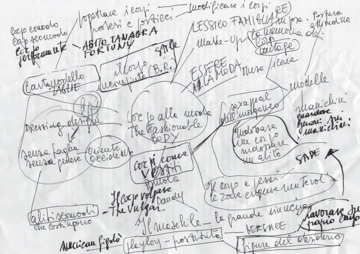Il nodo gordiano resta la perfezione imposta dalla moda a un formato bidimensionale, un campo vuoto progettato per accogliere il corpo ma incapace di restituirne la complessità. Una geometria che ignora la tridimensionalità percettiva e continua, ostinatamente, a escludere quelle forme che eccedono i limiti tracciati, spesso in modo implicito, nel corso della storia.