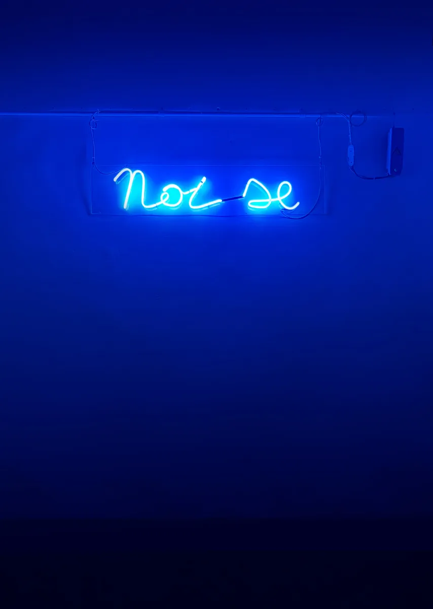 Per chiarire ulteriormente la posizione radicale di Codeghini cito da catalogo un breve estratto di Elio Grazioli: “il rumore è il “se” che è parte di “noi”, che lavora con noi; è il brusio del neon con cui sono scritte le due paroline, al limite dell’udibile, ancora una volta, ma che c’è e lavora”, condizione esplicitata nell’opera There is always something behind everything (2009) un codice variabile di pieni e vuoti realizzato con sedici tele nere, quelle di protezione delle casse acustiche. Ed è da qui che il Noi prende il suo campo, lasciando il Se alle opportunità della percezione e degli stimoli. Codeghini ce lo ricorda spesso anche con le parole di Alessandro Broggi recentemente scomparso. Tra i due c’è stata una collaborazione di diversi anni e in diversi ambiti, una figura da cui questo progetto di Codeghini non può prescindere: “Non abbiamo compiuto un passo importante, semplicemente stiamo provando”. Siamo quindi quasi al punto di soglia di una scelta tra il farne o il non farne parte e iniziare un percorso. Per citare ancora il racconto di Alessandro Broggi Noi (2021), che Jacoviello ha scelto di utilizzare come traccia di un’esperienza perduta, resti di voce con cui dialogare per confrontarsi immaginariamente sull’idea della mostra: “Ci conosciamo tutti, da sempre, il gruppo che costituiamo ci definisce quasi interamente. Non ci sono esseri che hanno poi relazioni tra loro, ma sono tutti il prodotto di quelle stesse relazioni, non c’è niente al di fuori, esistiamo soltanto suggerendoci la battuta l’uno con l’altro, siamo reciproche conseguenze”.