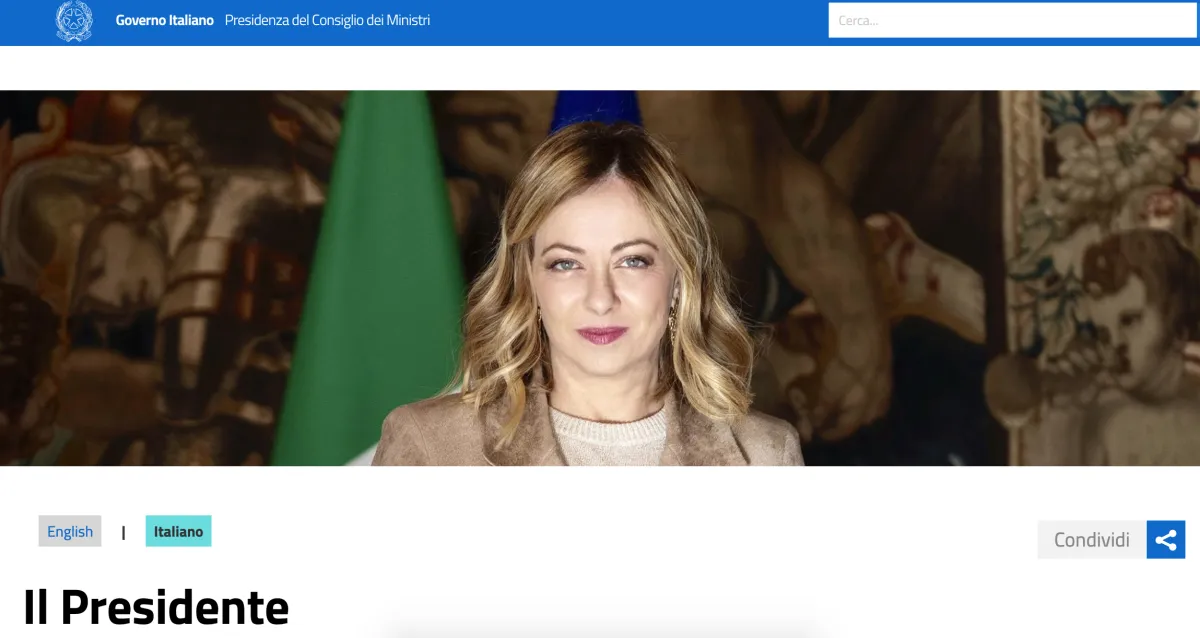 Ma dove precipita tutto questo? I comizi di Giorgia Meloni si aprono con una voce maschile che annuncia stentorea (come si fa in America): “Il Presidente del Consiglio dei Ministri! il Presidente di Fratelli d’Italia!”. La collisione femminile-maschile si manifesta immobile nella pagina ufficiale di Palazzo Chigi, ed è qui che si affloscia la fortunata progressione: “io sono Giorgia, sono una donna, sono una madre, sono italiana, sono cristiana...”.