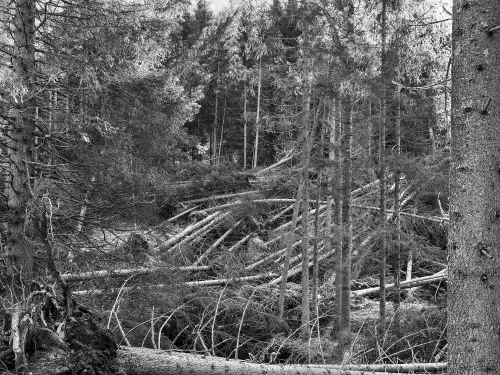 Una ricognizione che attraversa i luoghi: dai paesaggi marini della Puglia salendo su fino alle Alpi. In questo modo si possono leggere le differenze e le similitudini tra paesaggi geograficamente distanti, morfologicamente diversi, ma che hanno in comune la struttura spaziale che la natura predispone. In questo senso lo sguardo del fotografo si insinua tra gli interstizi degli alberi affiancati gli uni agli altri a formare delle installazioni di land art, ma senza l’artista. Così leggendo in profondità la serie dei filari di alberi, invasi di luce e perpendicolari al terreno, non si può non immaginare una foresta architettonica composta da questi esili pilotis, richiamando la memoria delle architetture di Le Corbusier. Tuttavia, questa ricerca fotografica insiste nel farci riflettere, in maniera ossessiva, su questo ambiente ma ci mette di fronte alla distruzione del patrimonio boschivo. Così, fuori dalla spettacolarizzazione che molti fotografi hanno fatto della tempesta Vaia, avvenuta nel 2018, lo sguardo di Introini ci porta dentro la devastazione evitando la sua estetizzazione. Questo insieme di fotografie si colloca nel solco della fotografia dei pionieri e appartiene in misura maggiore alla cultura fotografica americana piuttosto che italiana. Infatti, la fotografia italiana non riesce a parlare di temi attuali (il cambiamento climatico ad esempio), perché ha virato verso temi intimi e sono poche le ricerche che appaiono utili a ripensare il nostro rapporto con la natura, tra queste emergono i lavori della fotografa Marina Caneve. Il resto è un rincorrere i “maestri” con mostre, convegni, e libretti autoreferenziali che non superano i confini nazionali.