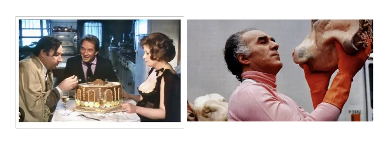 Che ne sarebbe oggi di Philippe, Michel, Ugo e Marcello – il giudice, l’uomo di spettacolo, il cuoco, l’aviatore – se decidessero di rinchiudersi in una villa fuori Parigi, a mo’ delle orge sadiane, e ammazzarsi dal mangiare? Che senso ha, oggi, una abbuffata come quella? L’idea di morire mangiando, deliberatamente, è quanto di più lontano possa esserci dalla nostra sensibilità, dal nostro immaginario alimentare, fors’anche dalla nostra cultura. I celebri eroi della grande bouffe s’ingozzano a più non posso, ma per loro il cibo ha un valore relativamente casuale: è la quantità che vale. Non c’è gola, c’è eccesso. Di modo che l’ingordigia suicida vale come cupa allegoria dell’accumulazione capitalistica. Così, i quattro ci danno dentro, con una voglia di rimpinzarsi apparentemente senza senso, ma in effetti hanno soltanto il desiderio di farla finita. Di smetterla con tutto e con tutti.