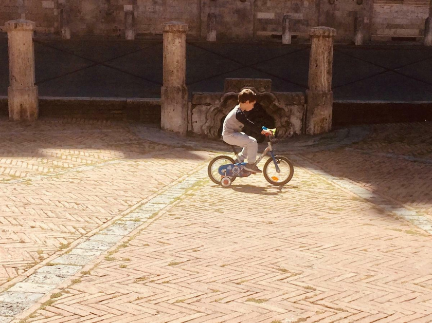 Nel primo giorno della “Fase2” ho cercato ancora la Piazza. Una trentina di persone, voci di richiamo, guanti che salutavano, facce stropicciate dalle mascherine e capelli lunghi. Finalmente, però, ho trovato quello che non si vedeva da mesi e che, l’ho capito solo in quel punto, era insensatamente mancato più di tutto: le bambine e i bambini. C’era chi scappava, finalmente, con trenta centimetri di gambe, senza dover stare per mano a un genitore; quelli che si rincorrevano con un bassotto dagli occhi paranoici; e poi il bambino più bello di tutti, una piccola persona che stava imparando a andare in bicicletta, incurante di trovarsi proprio nella “Fase2”, quella del ritorno della Piazza.