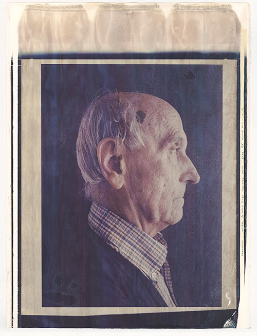 Maurizio Galimberti ha conosciuto gli ospiti del Paese Ritrovato, un villaggio realizzato dalla Cooperativa La Meridiana di Monza per accogliere chi convive con l’Alzheimer. Ne ha sentito le storie, li ha fotografati. Viene spontaneo ragionare sul fatto che l’uso della fotografia per ritrarre soggetti destinati a dimenticare e dimenticarsi sia più che significativo: viene fissato un ricordo che si sa già in partenza non poter appartenere alla persona a cui è riferito. Fotografandolo, si salva un volto che appartiene ormai a una storia sconosciuta, ottenebrata da nuove leggi cognitive. Il volto si fa testimone di chi, ora, è incapace di testimoniare se stesso: guardando i ritratti siamo guardati da chi è proiettato fuori dal tempo in un altro tempo, dentro un “adesso” destinato a farsi sempre più ristretto.