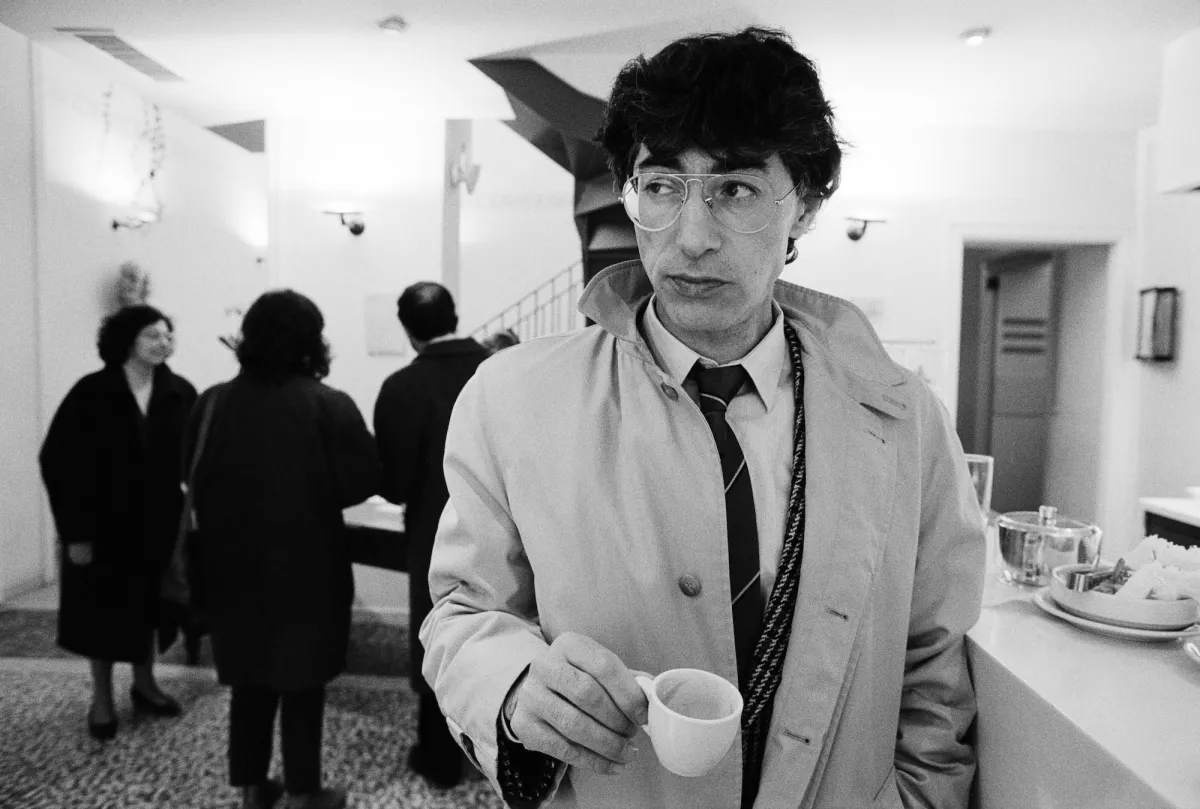 Proviamo a immaginare di non sapere chi è la persona che compare in questa fotografia, quanti anni ha, che mestiere fa e dove è stata scattata. Del resto nel 1991, anno a cui risale questo scatto, non tutti in Italia conoscevano quest’uomo, per quanto ben presto si fosse fatto notare. Anche in Gran Bretagna, paese a cui era destinata la fotografia – una commissione a un reporter –, era davvero un perfetto sconosciuto. Lo è anche per me in questa specie di gioco. Per prima cosa posso dire: è un tipo provinciale. Non ha proprio niente di particolare, o almeno così mi sembra. Forse qualcosa in più di lui posso dedurlo dagli abiti: un professionista, un avvocato, un commercialista o forse un notaio? Piuttosto un impiegato, direi. Più facile collocarlo in quel ruolo. Giacca e cravatta e impermeabile chiaro, aperto sul davanti, sembrano quelli di un travet. Forse gli occhiali a goccia dicono qualcosa di più: Ray-Ban, un modello cool all’epoca, un tocco comunque popolare. È un tipo normale, e non all’ultima moda. La cosa che mi colpisce è lo sguardo a lato; meglio: in diagonale. Un guardare senza guardare. Una posa naturale o un suggerimento del fotografo? Forse entrambe le cose. Ha qualcosa di furbo, ma senza che l’accentui, che lo sottolinei: è così senza troppo sforzo. Sembra suggerire qualcosa come: so ben io come stanno le cose.