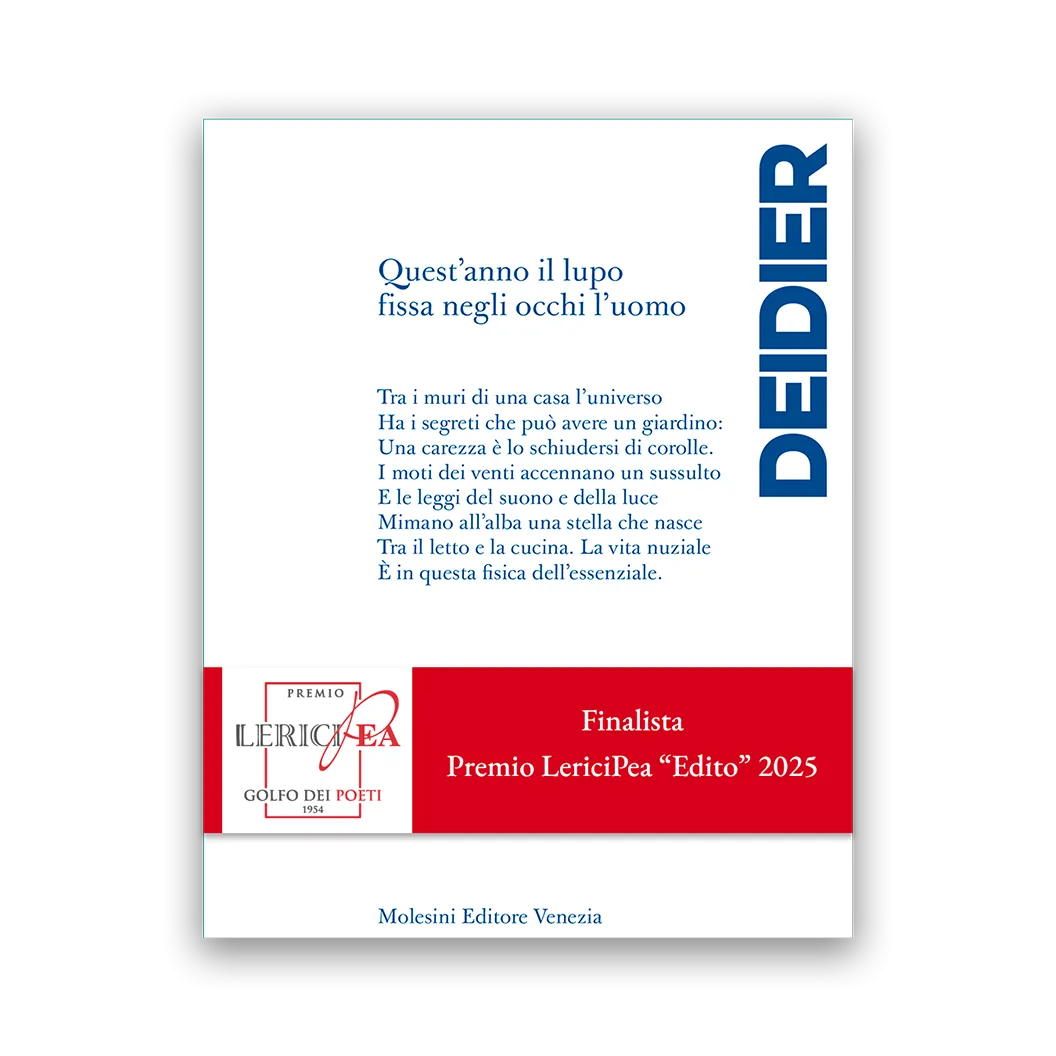 L’ultimo libro di Roberto Deidier, entrato nella dozzina del premio Strega 2025, ha un titolo quasi fiabesco, quasi noir, Quest’anno il lupo fissa negli occhi l’uomo (Molesini Editore, 2025, con saggio prefatorio di Marco Carmello). L’autore ci dice di averlo “rubato” alla scrittrice Anna Maria Ortese, dal suo racconto breve Casa di bambola. E già potrei affermare, prendendo spunto da queste parole, che da sempre Deidier ha intrecciato nei suoi versi, le vite della letteratura e ancor più dell’arte, con quelle della quotidianità. Le poesie qui contenute si trovavano disperse in riviste, antologie, libri d’arte; nella parte finale della raccolta, per esempio, voglio ricordare una silloge dal titolo quasi sibillino: La volpe, il cinghiale, il serpente, lo scoiattolo, già apparsa nel 2022 presso le edizioni d’arte Il Bulino, con dedica alla grande artista visiva Giulia Napoleone.