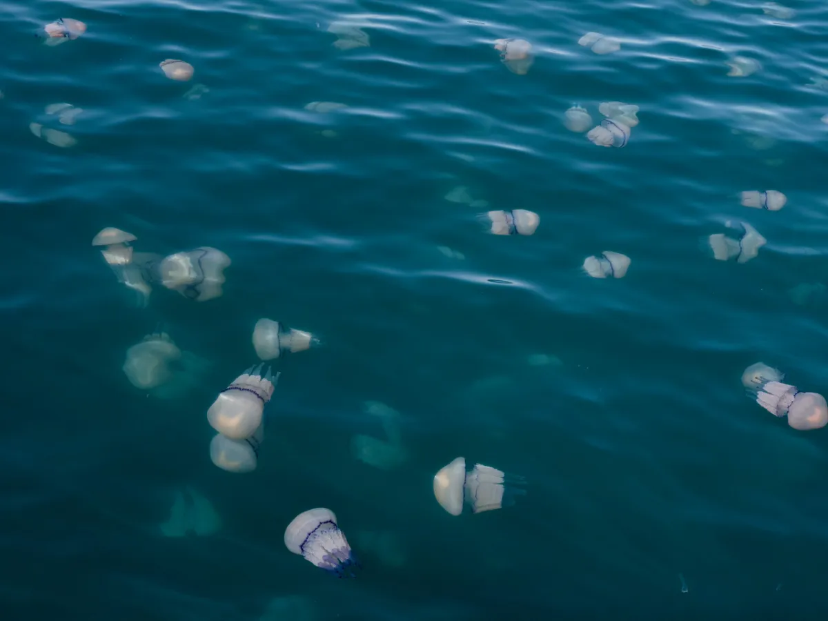 SG: Molto semplice: è l’apparizione di cose che non ti aspetti. È stata fatta a Trieste, mentre facevo un lavoro su Raffaello, e l’ho integrata in quel progetto, che si intitola Documents on Raphael (Mousse, 2022), e costituiva un modo molto evidente di sopravvivere a un tema così presente, così chiuso. Era un’apparizione all’interno di un libro che aveva tutt’altro tema: all’interno di una cronologia di un progetto attorno a Raffaello ho inserito due fotografie di queste meduse. Ha funzionato perché, quando lo presento, quando ne parlo, la domanda è sempre: “Perché le meduse?” Le meduse sono proprio per distrarre l’attenzione da Raffaello, che è un tema che crolla sul tavolo con una pesantezza importante – perché si prende tutta l’attenzione, è ovvio che diventa il tema principale – però a me non interessava tanto il tema raffaellesco in senso documentario, e mi interessava che il progetto fosse un’opportunità per studiare la fotografia come forma di rappresentazione, come forma di linguaggio, delle forme che ha. Questa fotografia, compositivamente, è simile a quella fatta nel Museo Precolombino disegnato da Radic, con reperti sul tavolo; in questo caso sono meduse nel mare.