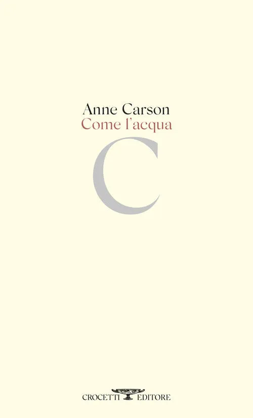 Come l’acqua arriva forse in ritardo rispetto ai testi di Carson oggi disponibili in italiano, ma forse i tempi sono quelli giusti: i lavori ibridi di cui si compone questa raccolta consentono al lettore uno sguardo più consapevole—e in gran parte retrospettivo—su Economia dell’imperduto (1999 / 2020), Eros il dolceamaro (1986 / 2021), Vetro, ironia e Dio (1995 / 2023), Autobiografia del rosso (1998 / 2020), La norma sbagliata (2024 / 2025) e Decreazione (2005 / 2023), e di entrare così nel laboratorio liquido di Carson: in quel linguaggio che, un po’ come il suo lavoro di traduzione dal greco antico, è una costante riscrittura della parola attraverso la trasparenza e la densità dell’acqua – un “essere / fatto di suoni grezzi / uniti a monconi / e che si muovono / come una sola forma / laggiù” (193-195).